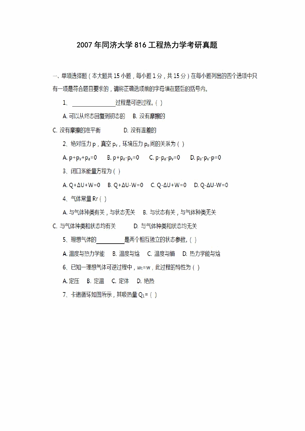 同济大学2014-1998工程热力学816半岛在线注册真题试题(21)
