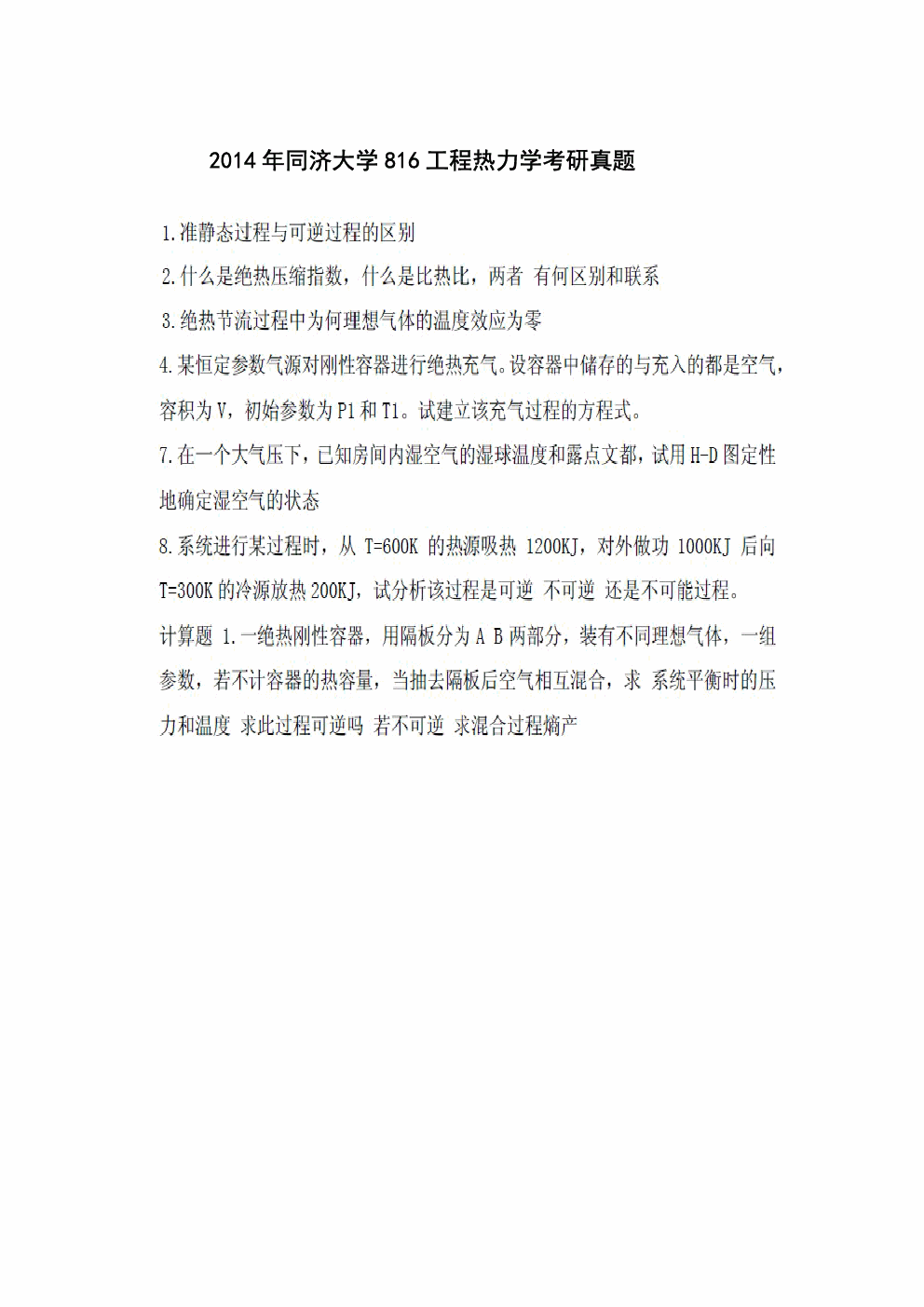 同济大学2014-1998工程热力学816半岛在线注册真题试题(35)