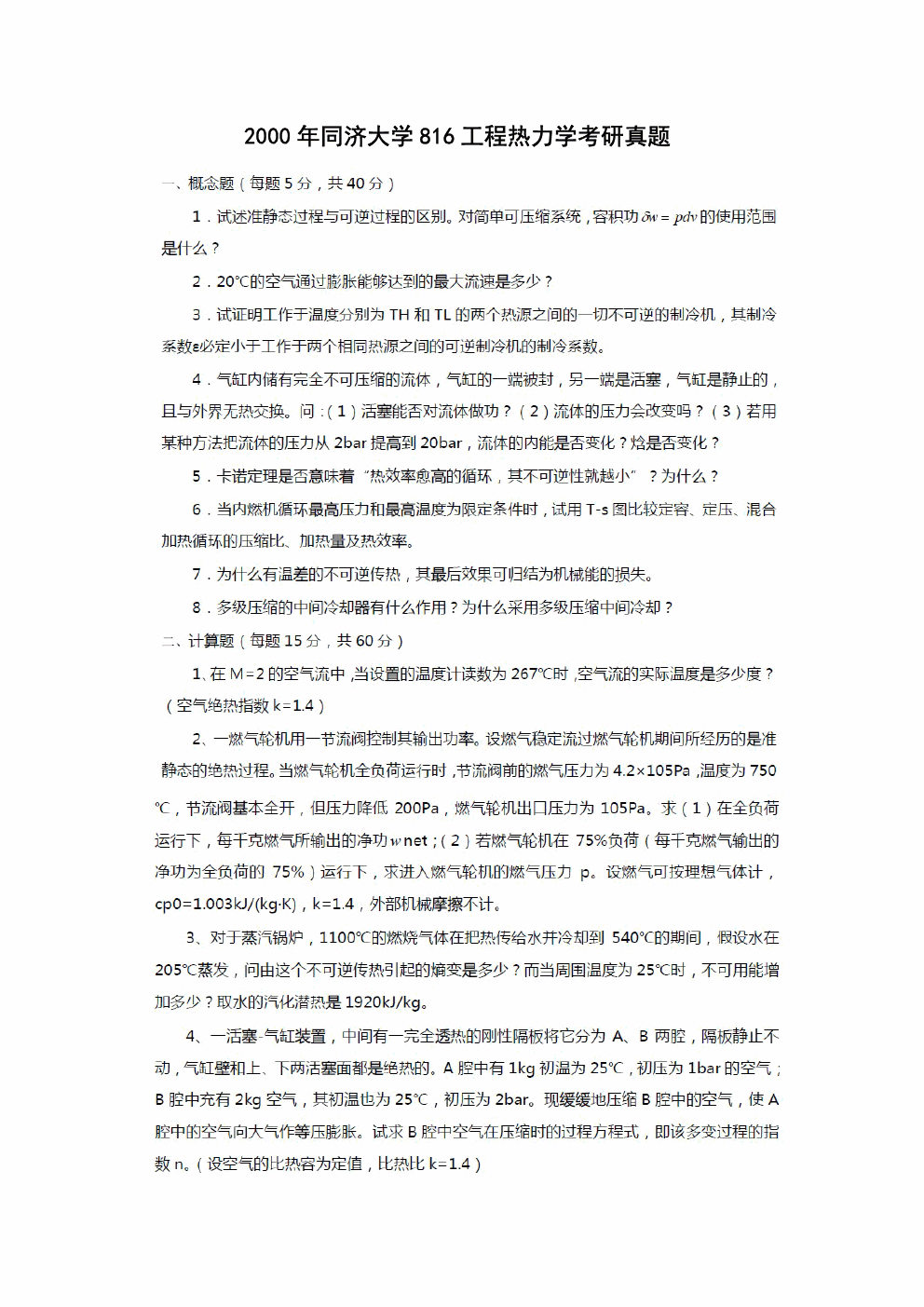 北京工业大学2001年硕士研究生入学考试试题