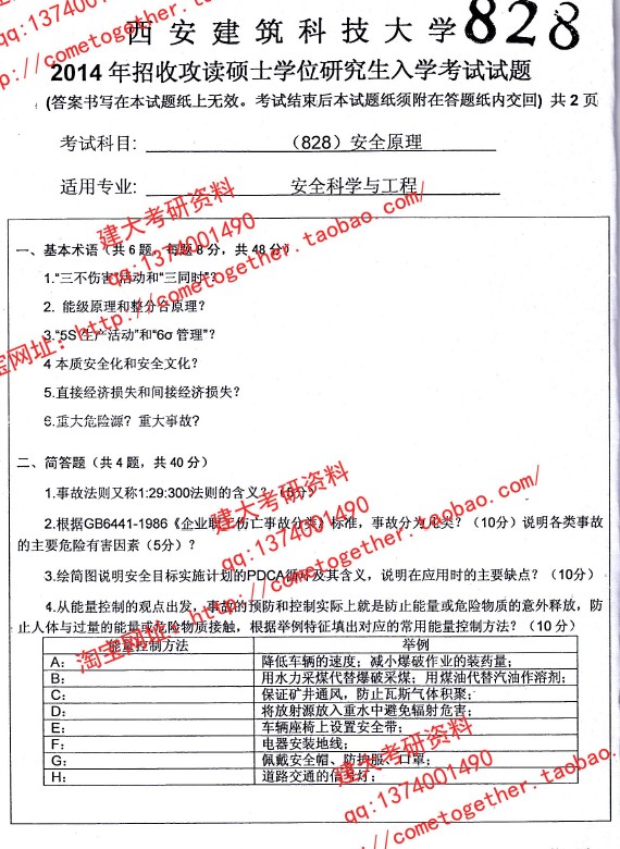 西安建筑科技大学2017-2006安全原理828半岛在线注册真题试题(11)