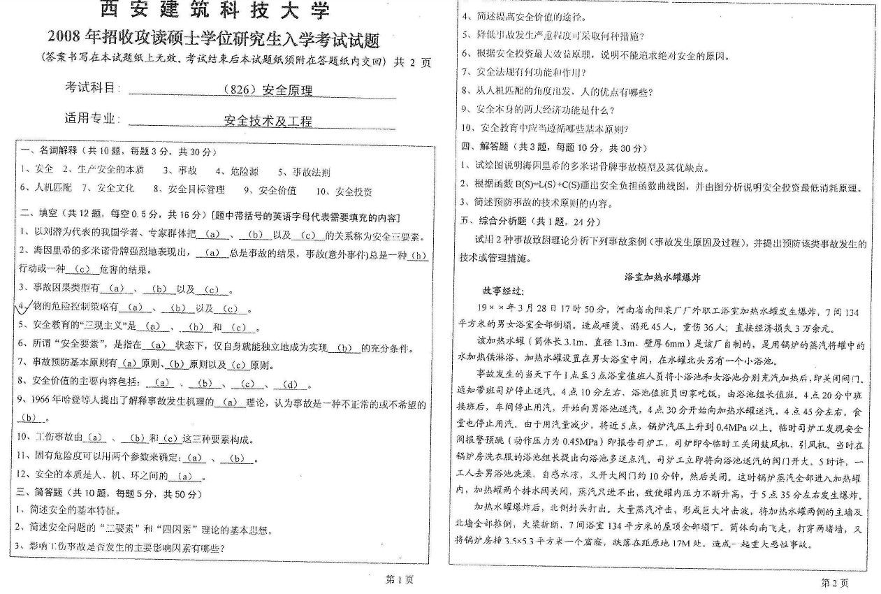 西安建筑科技大学2017-2006安全原理828半岛在线注册真题试题(20)