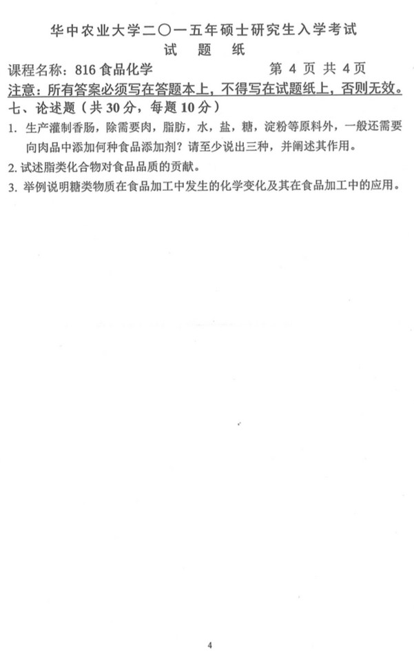 华中农业大学2015年食品化学816半岛在线注册真题(4)