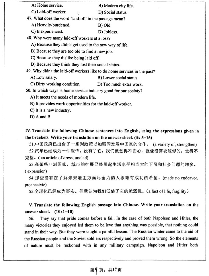 2019年湖南师范大学246英语半岛在线注册真题(9)