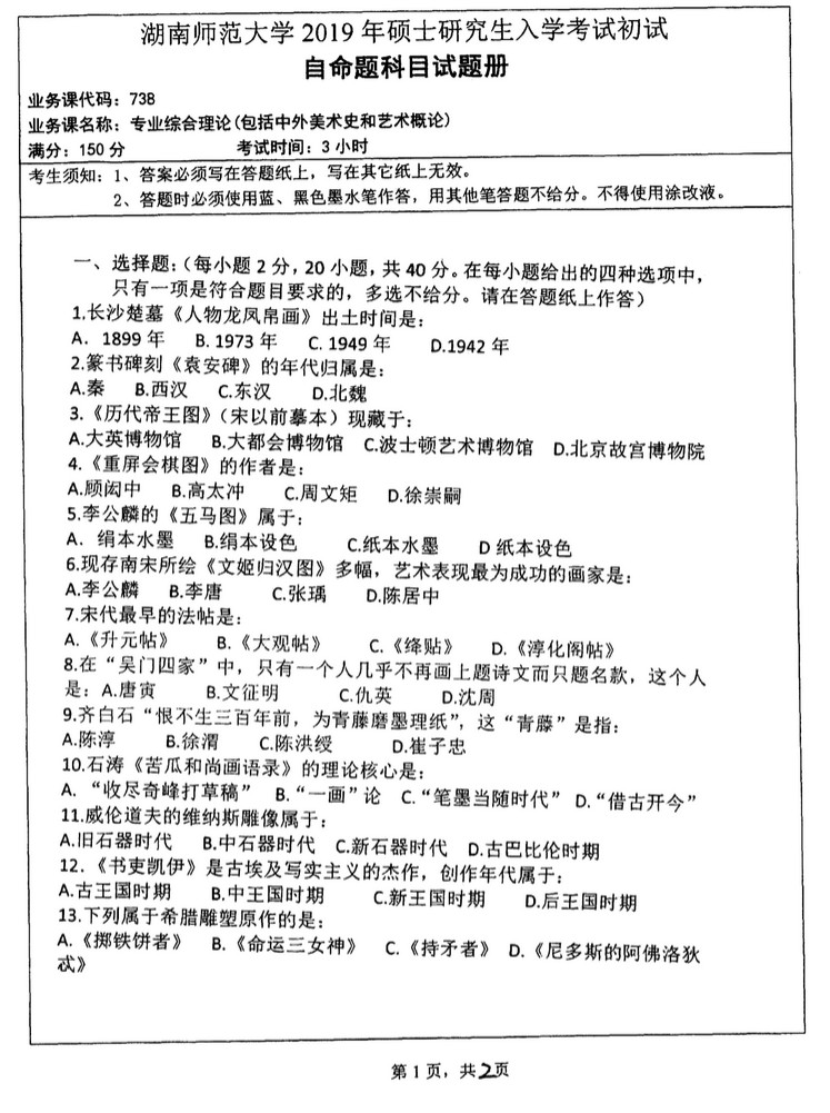 2013年湖南师范大学747历史学综合半岛在线注册真题