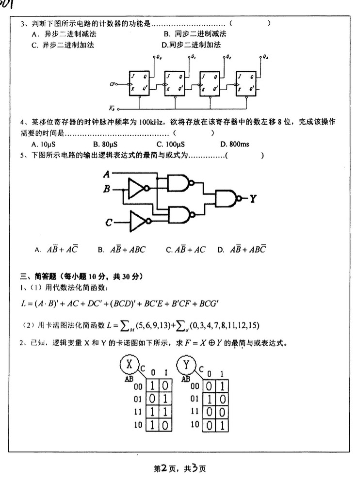 大题顺序可能不一样一、判断题(2分一个共10道题) 二、填空题(2分一个共10道题)涉及知识点:二进制码转格雷码、给定一个2的n次方time ...