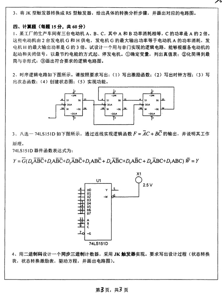 湖南师范大学2019电子科学与技术专业数字电子技术875半岛在线注册真题(3)