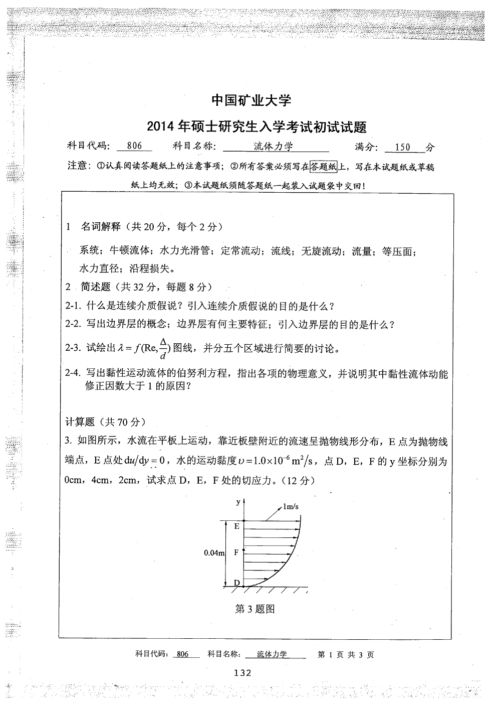 中国矿业大学徐州2017-2014流体力学806半岛在线注册真题