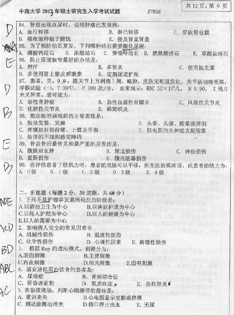 2013年中南大学308护理综合半岛在线注册真题(6)