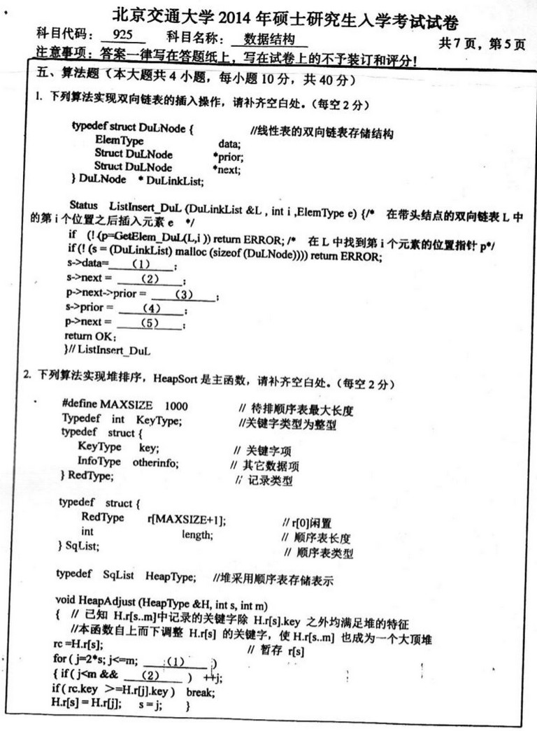 填空十个空,20分,这些都是最简单的,树的知识,链表的知识