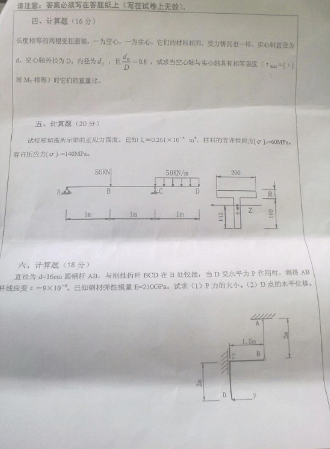 2009-2011年广西大学土木学院材料力学844半岛在线注册真题(3)