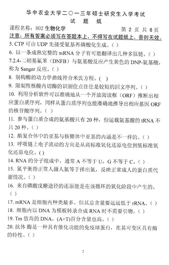 2013年华中农业大学802生物化学半岛在线注册真题(2)