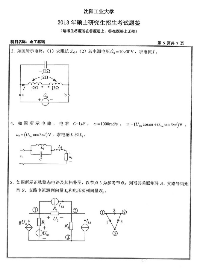 2013年沈阳工业大学804电工基础半岛在线注册真题(5)