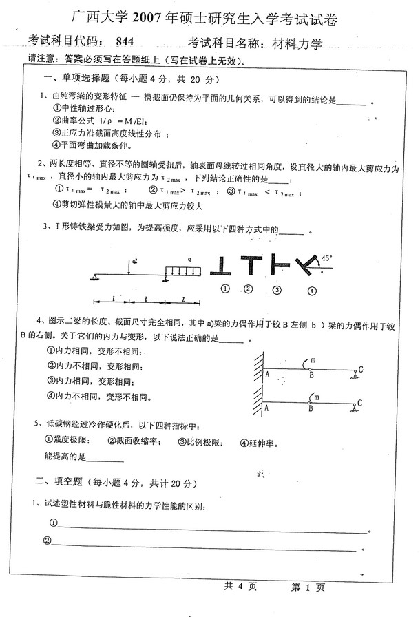 2006-2008年广西大学土木学院材料力学半岛在线注册真题(9)