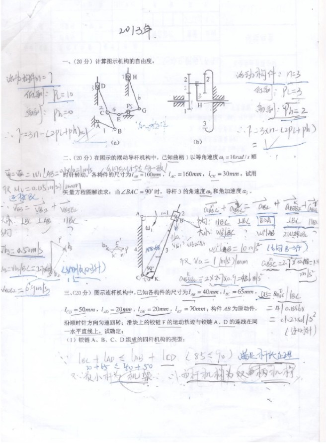 7凸轮机构某从动件确定位置求压力角,从动件速度,推程运动规律等(凸轮轮 ...