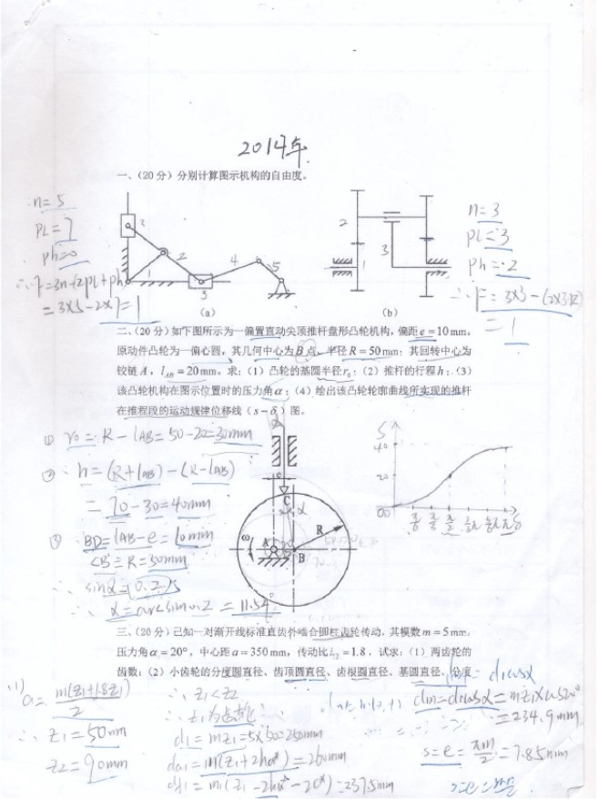 7凸轮机构某从动件确定位置求压力角,从动件速度,推程运动规律等(凸轮轮 ...