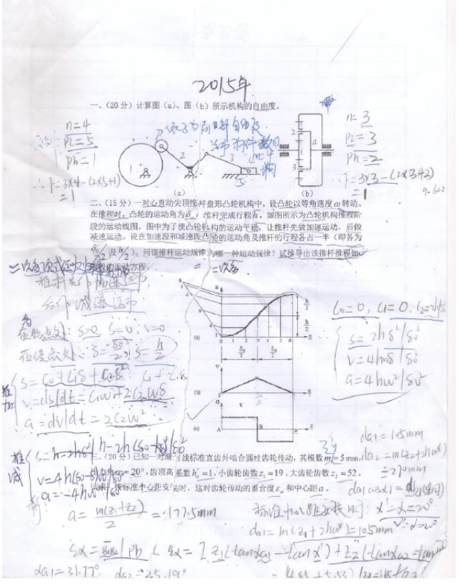 7凸轮机构某从动件确定位置求压力角,从动件速度,推程运动规律等(凸轮轮 ...