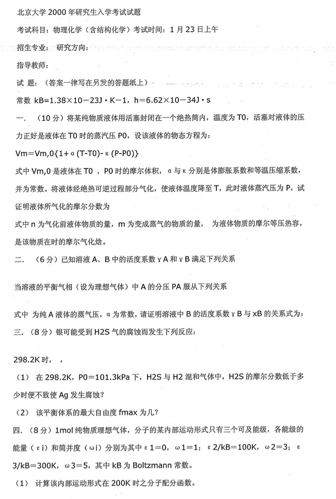 北京大学历年物理化学含结构化学半岛在线注册真题(13)