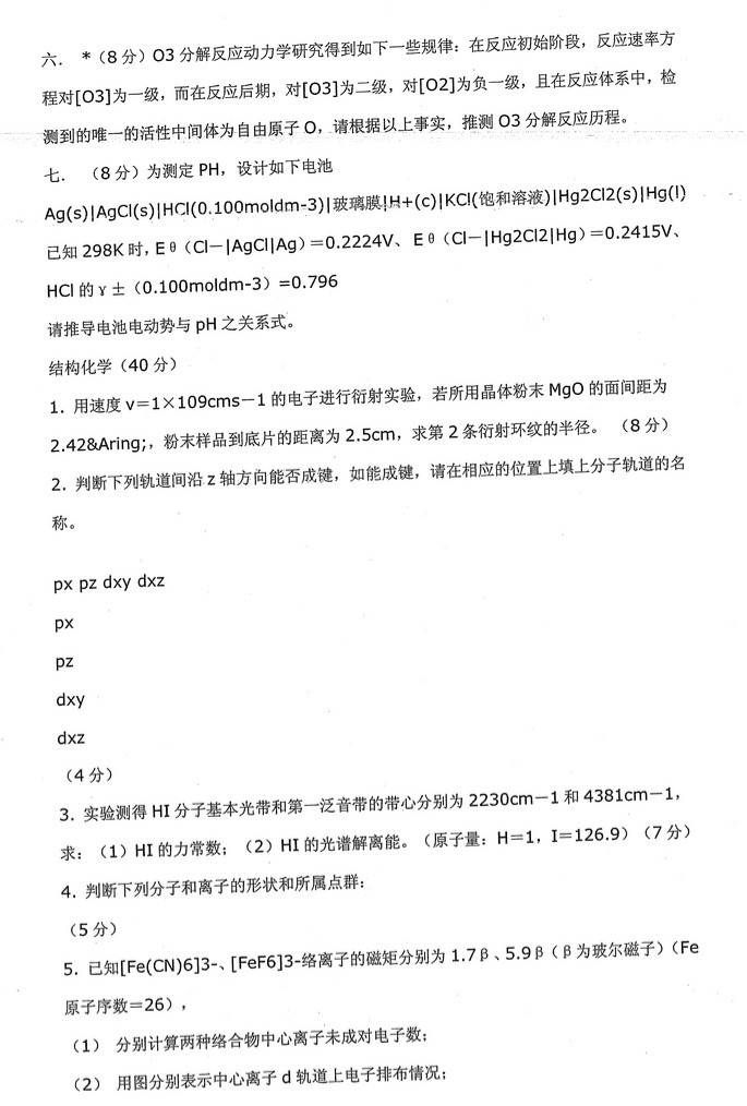 北京大学历年物理化学含结构化学半岛在线注册真题(2)