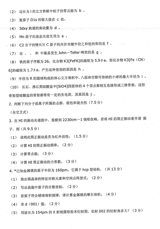 北京大学历年物理化学含结构化学半岛在线注册真题(4)