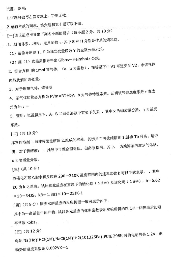 北京大学历年物理化学含结构化学半岛在线注册真题(6)