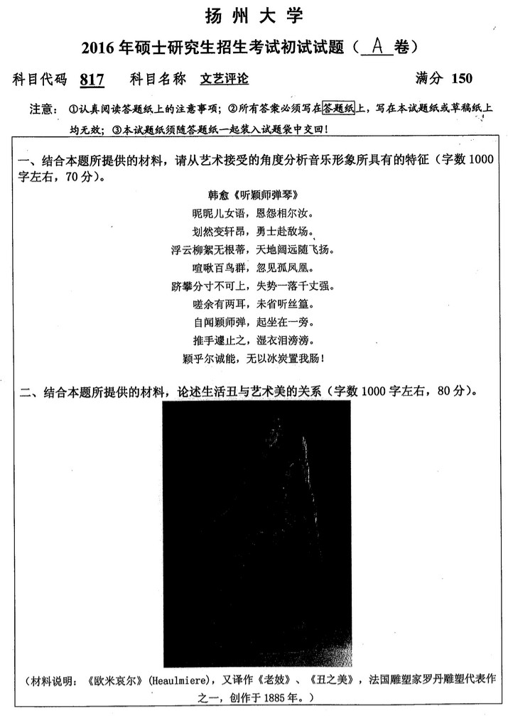 标题: 扬大文院 语言学及应用语言学 初试第一