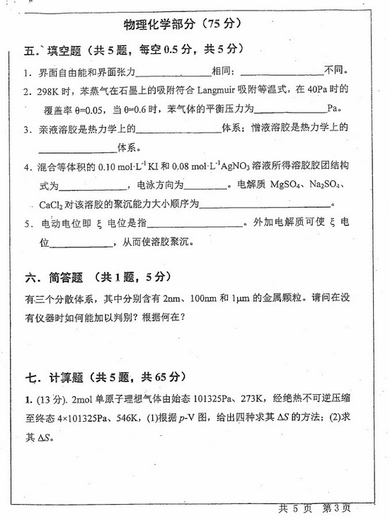 2012武汉大学物理化学与分析化学半岛在线注册真题(3)