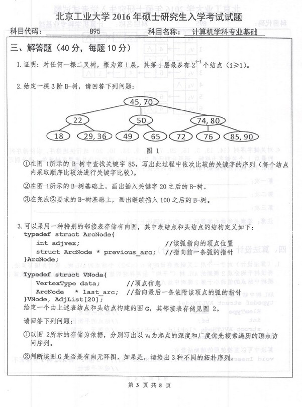 2016年北京工业大学895计算机学科专业基础半岛在线注册真题(3)