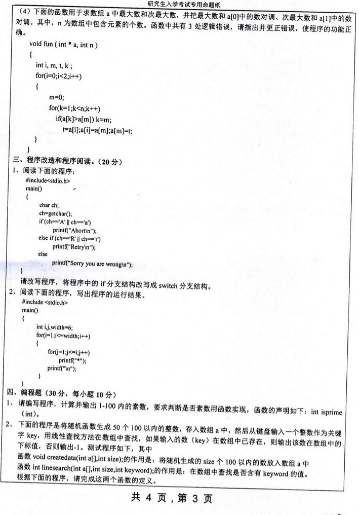 2011年湖南大学C语言程序设计半岛在线注册真题半岛在线注册试题(3)