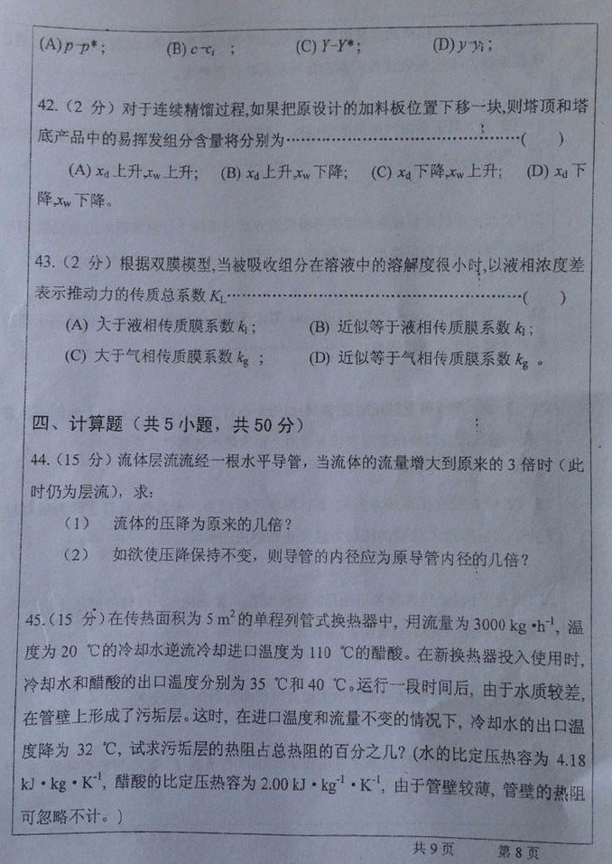 2013武汉大学化工原理882B卷半岛在线注册真题(8)