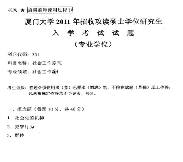 厦门大学社会工作原理2011年半岛在线注册真题半岛在线注册试题