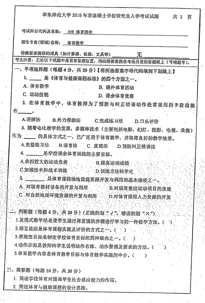 • 2014-2016南京师范大学346体育综合半岛在线注册真题