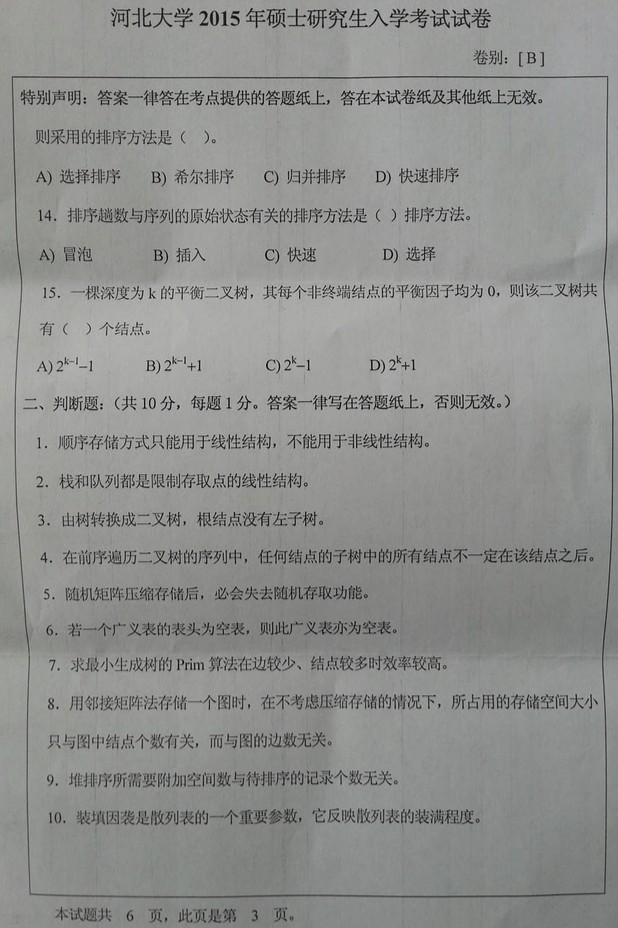 2015年河北大学数据结构907半岛在线注册真题(3)