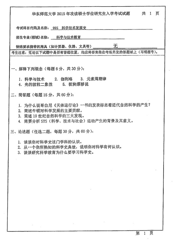 华东师范大学925科学技术发展史2010-2011-2015半岛在线注册真题(3)