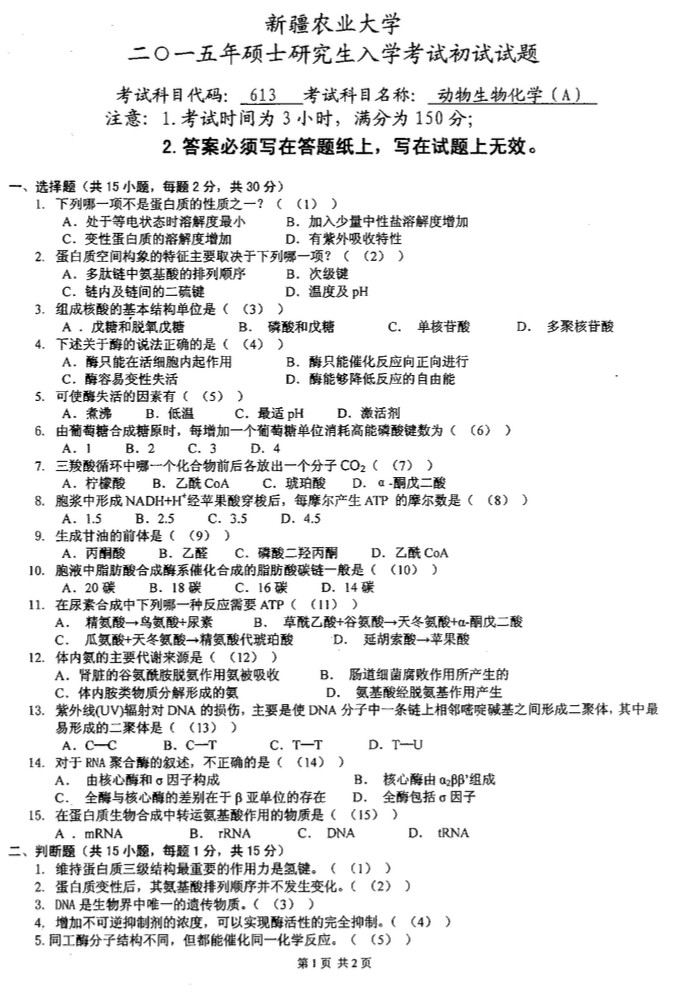 2015年新疆农业大学动物生物化学613半岛在线注册真题