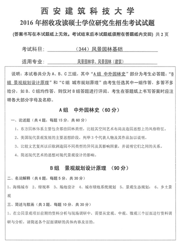 西安建筑科技大学344风景园林基础(建筑)2016年半岛在线注册真题