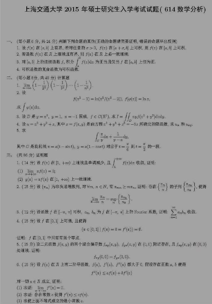 2010-2015上海交通大学数学专业半岛在线注册数学分析半岛在线注册真题(6)