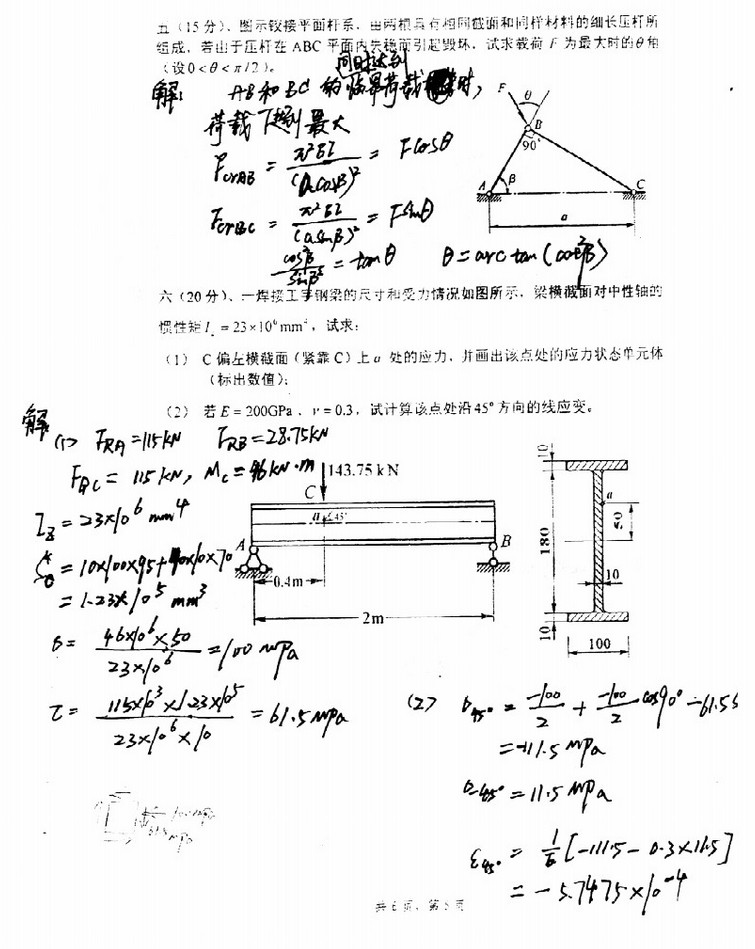 2013年西南交通大学923材料力学半岛在线注册真题带手写答案(5)