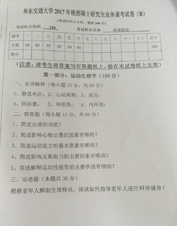 2015-2017华东交通大学346体育综合半岛在线注册专业课真题