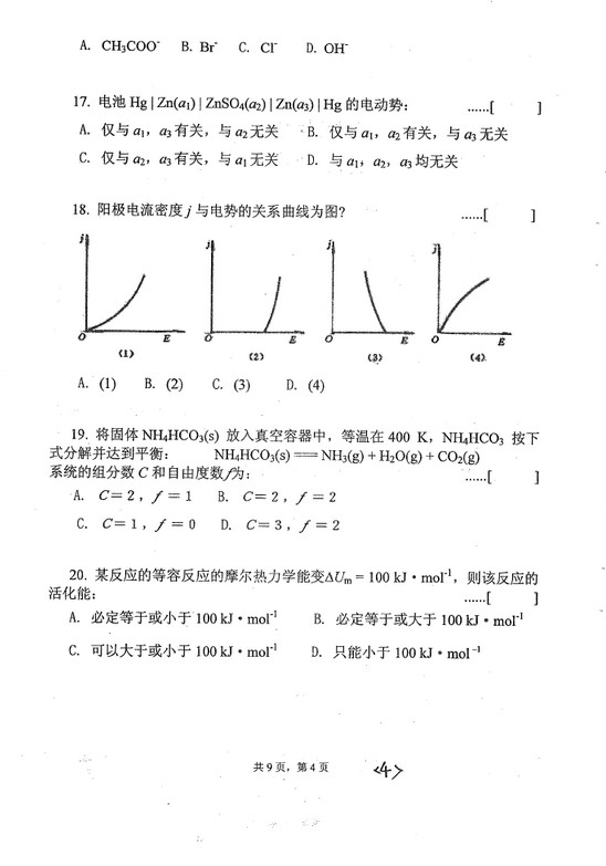 2018年云南大学化学一半岛在线注册真题复习试题(4)
