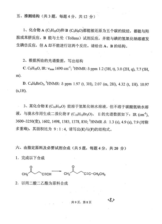 2018年云南大学化学一半岛在线注册真题复习试题(8)