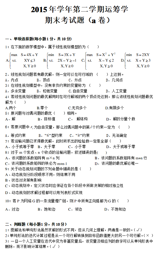 运筹简答题