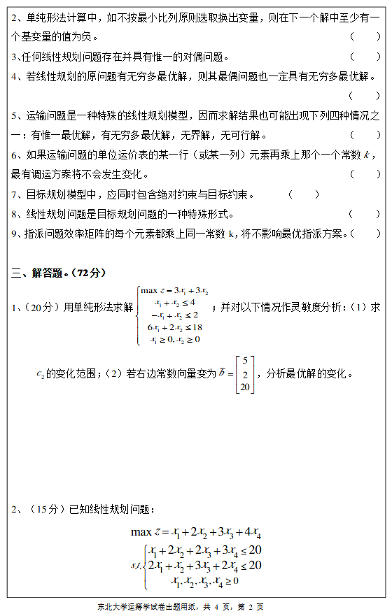 • 东北大学半岛在线注册2015年学年第二学期运筹学期末试卷
