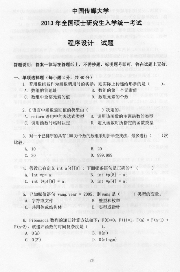 2013年中国传媒大学程序设计专业硕士半岛在线注册真题