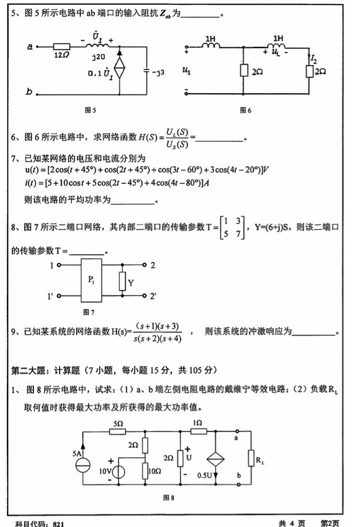 长沙理工大学2018年821电路半岛在线注册专业课真题试卷(2)