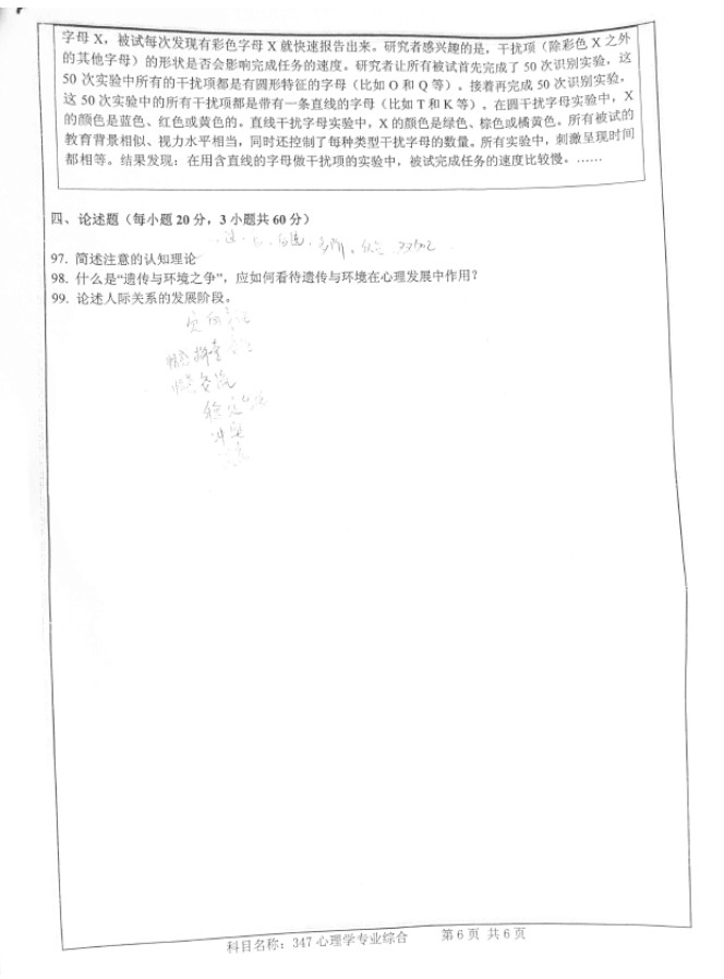 2014南京师范大学347心理学专业综合半岛在线注册试题(6)