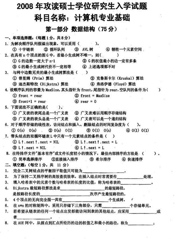 2008年电子科技大学820计算机专业基础半岛在线注册试题答案