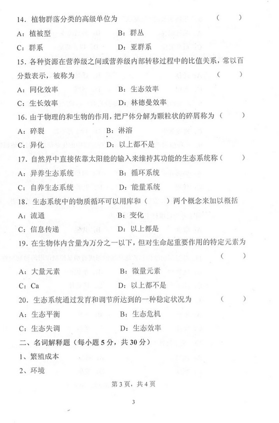 2015年西北师范大学817普通生态学半岛在线注册初试真题(3)