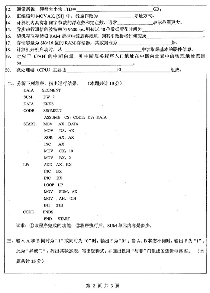 2013年湖南师范大学875数字电路与微机原理半岛在线注册真题(2)