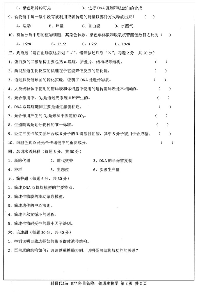 2010-2014江苏大学普通生物学复试历年半岛在线注册真题(6)