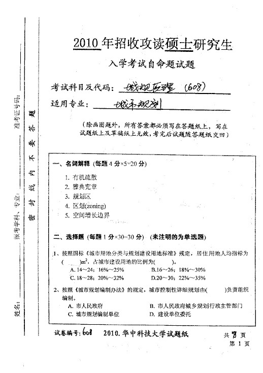 2002-2014华中科技大学考试城市规划原理608半岛在线注册试题(13)